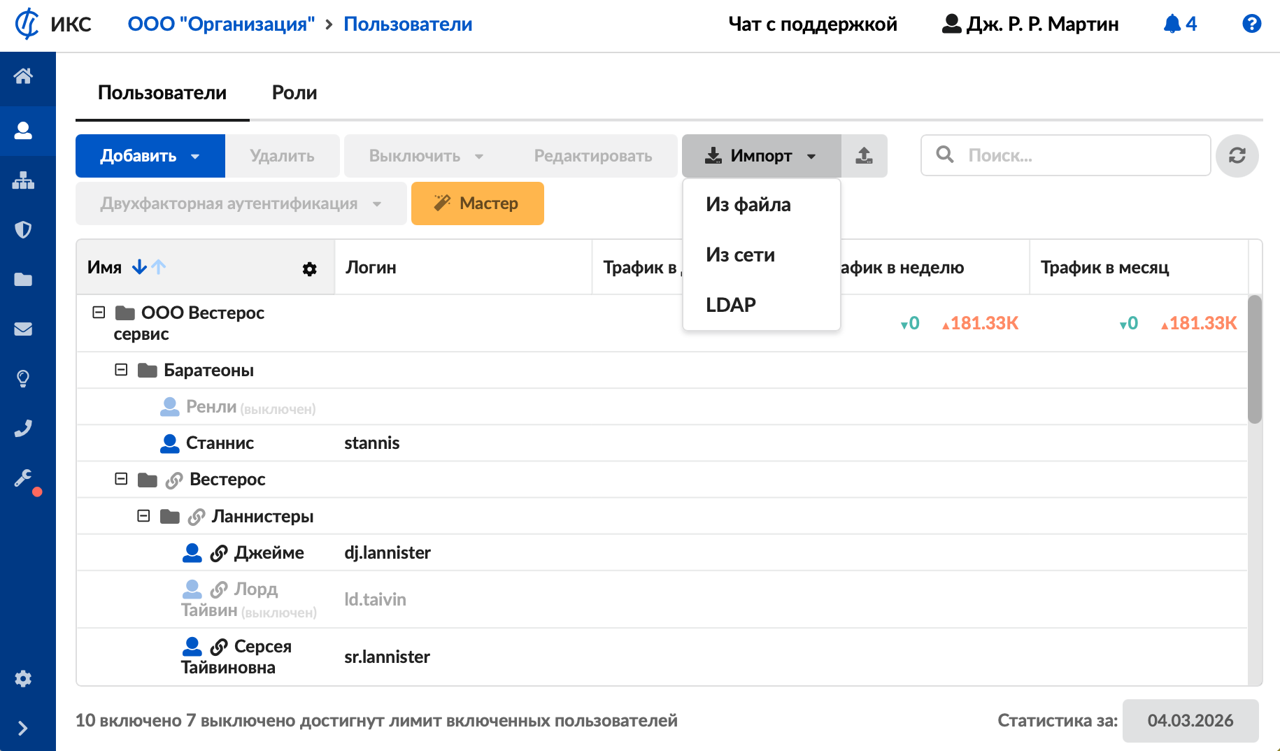 В ИКС можно не создавать пользователей вручную, а просто импортировать их. Импорт пользователей осуществляется в модуле «Пользователи», который расположен в меню Пользователи и статистика > Пользователи.