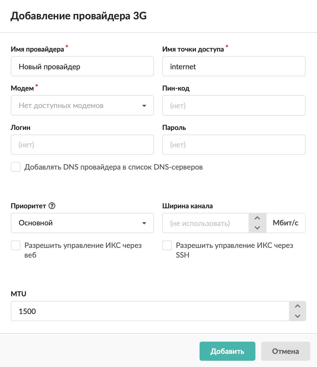 - Нажмите кнопку «Добавить» и выберите «Провайдеры > Провайдер 3G».