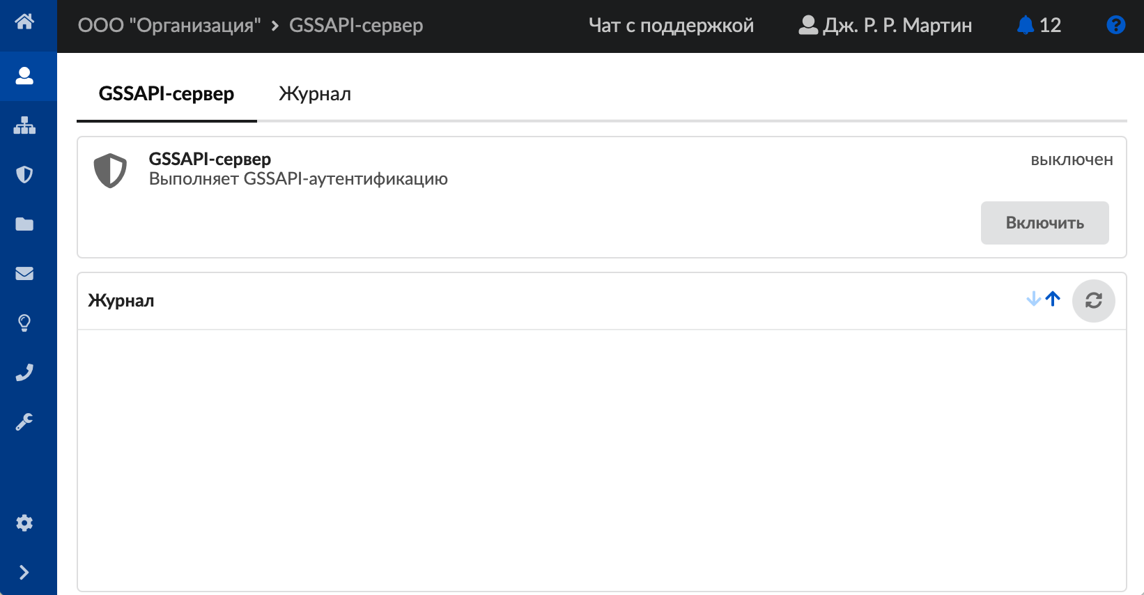 Для открытия модуля перейдите в меню Пользователи > GSSAPI-сервер.