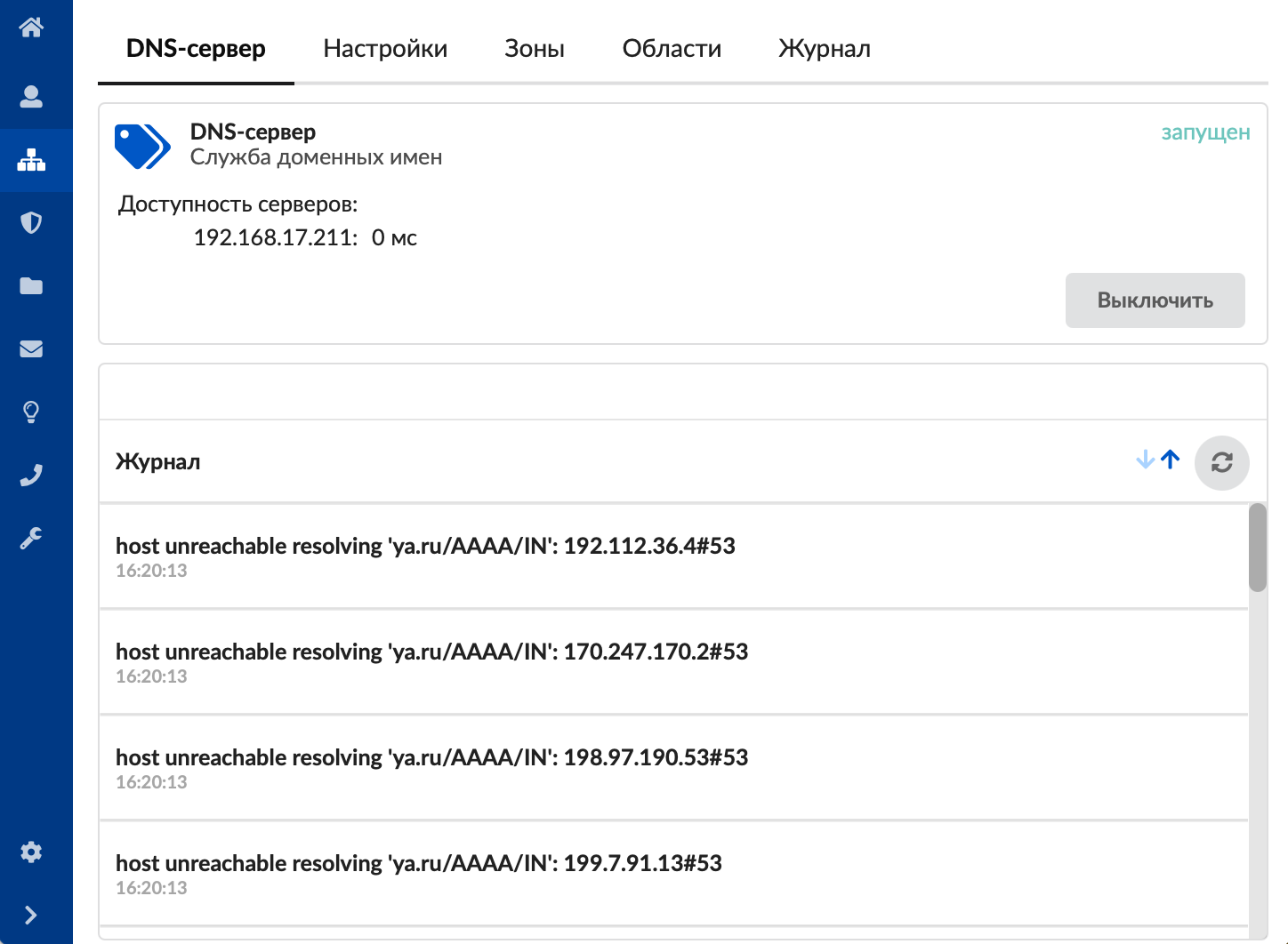 Данная вкладка предназначена для настройки DNS-сервера.